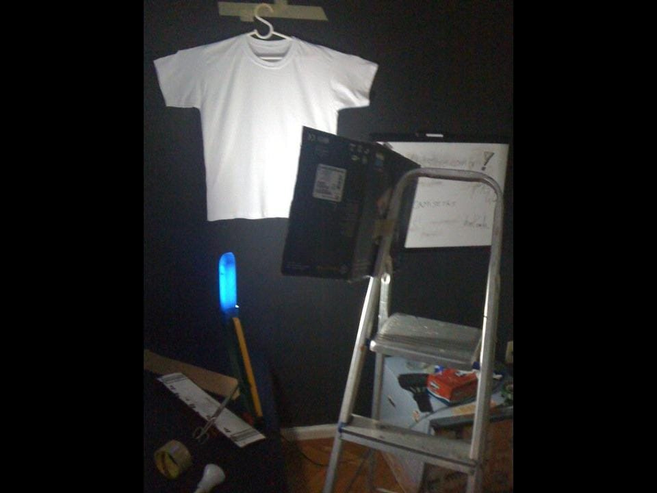 Dei um jeito de fazer as fotos das camisetas penduradas na parede do meu quarto e consegui usar os widgets de compra do Paypal — feitos para o eBay — na minha página.