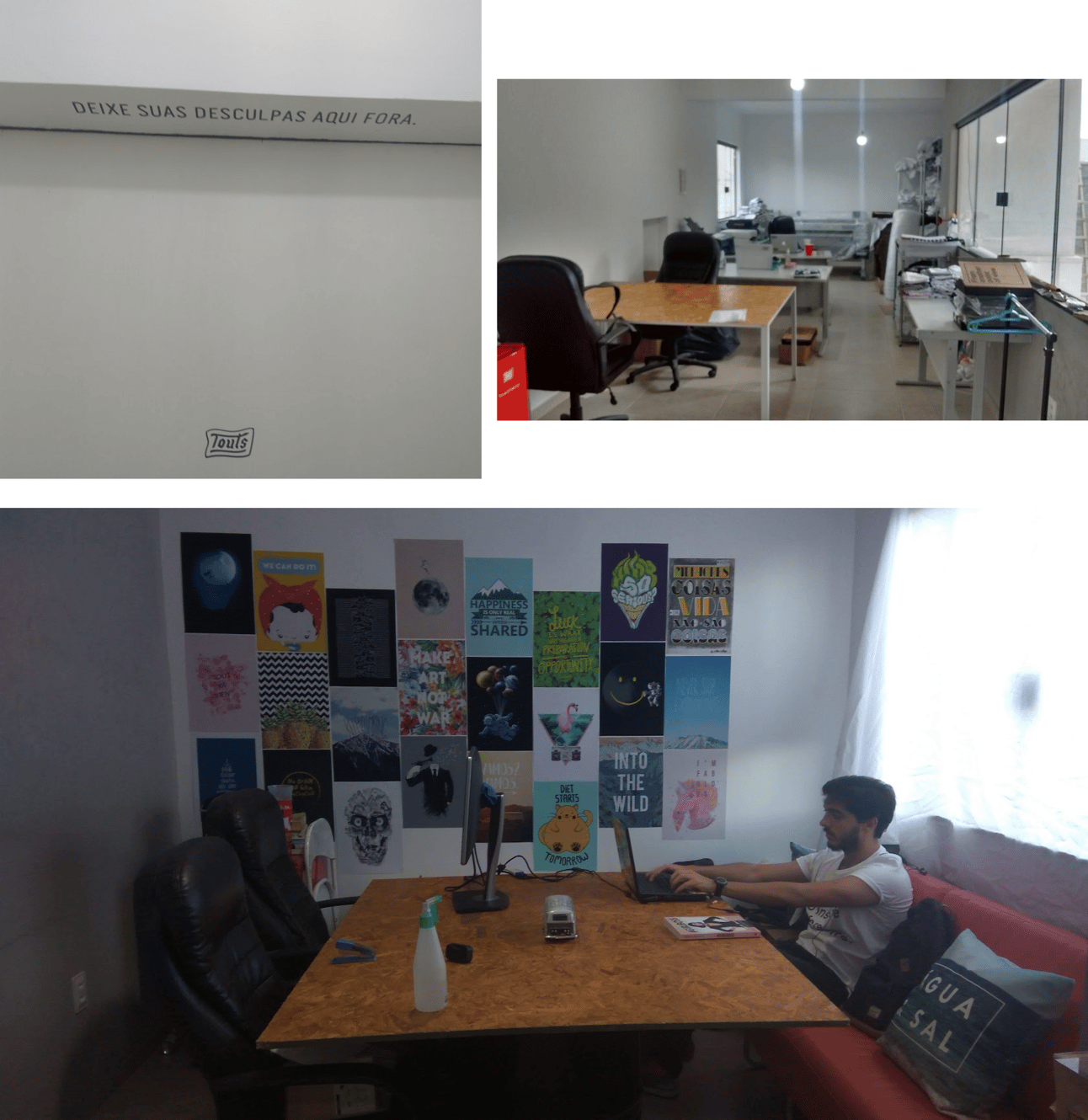 Novamente apesar dos perrengues, a gente estava super feliz que nossa fábrica tinha um espaço adequado e poderíamos montar algumas estações de trabalho ali para usar como escritório.