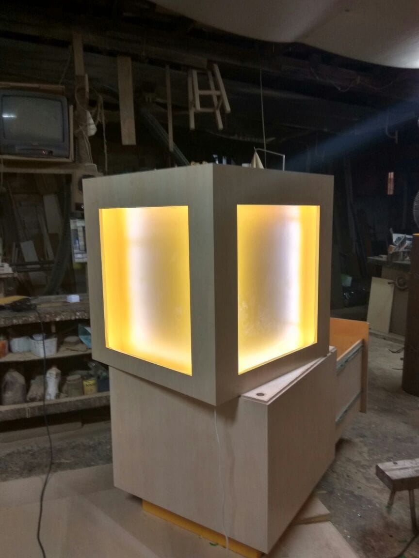 O Alberto nunca tinha feito um quiosque propriamente dito, mas já tinha feito alguns estandes e muitos armários.