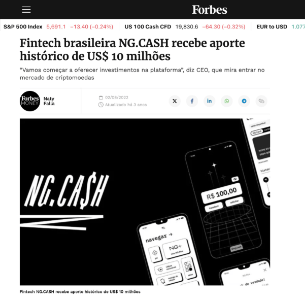 A nova empresa seria a NG.CASH, criada a partir do NeagleBank, projeto encabeçado por Mario Augusto Sá que criou o banco digital do canal do YouTube Neagle, da dupla Eagle e Neox, também sócios da empresa.