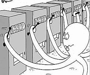 Pense que você está num cassino de frente pra várias slot-machines (também conhecidas como “one-armed bandit”).