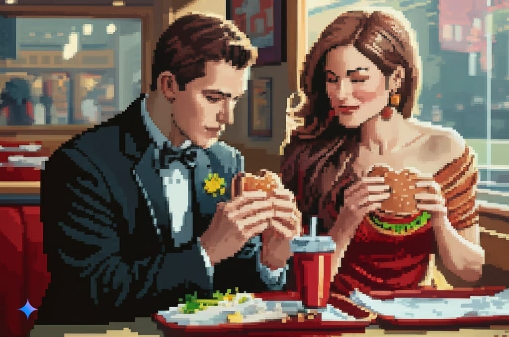 Bob percebeu uma "incoerência". Quem almoça num restaurante simples de terno e gravata? Então ele perguntou: “Por que estavam tão arrumados?”
