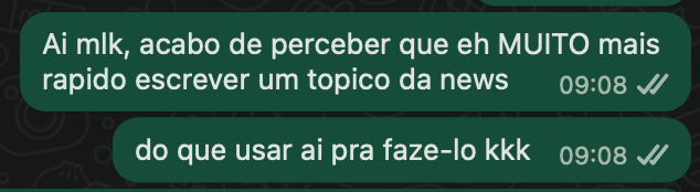 Essa reflexão me fez parar de terceirizar a news pra AI e voltar a escrever eu mesmo.