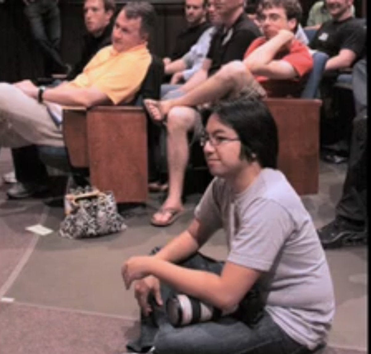 Sem combinar nada com ninguém, ele simplesmente apareceu no evento, sentou na primeira fileira e começou a fotografar todos os palestrantes.