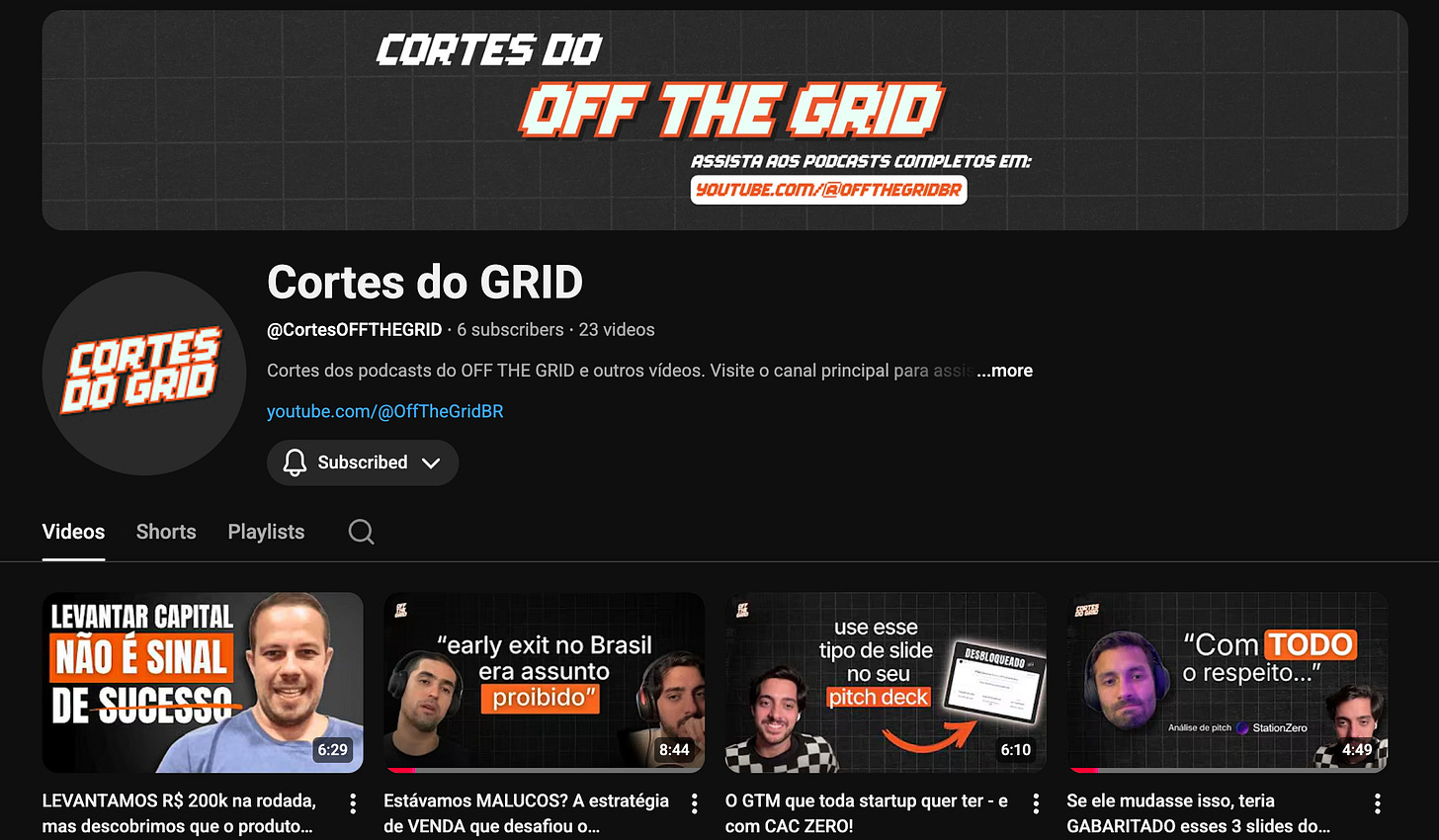 Decidimos experimentar essa estratégia criando nosso próprio canal de cortes onde vamos postar vídeos curtos e médios de nossos episódios.
