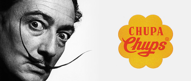 Em menos de uma hora, Dalí desenhou no guardanapo o icônico logo com a tipografia vermelha envolta em uma margarida amarela. Sua sacada genial foi sugerir que o logo ficasse no topo do pirulito, não na lateral embalagem, assim seria visível o tempo inteiro.