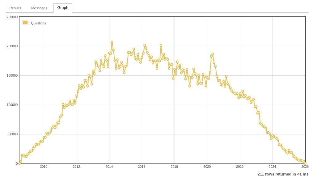 Vi esse gráfico da quantidade de perguntas no Stackoverflow no tempo. É impressionante o impacto que as ferramentas de AI teve em alguns negócios.
