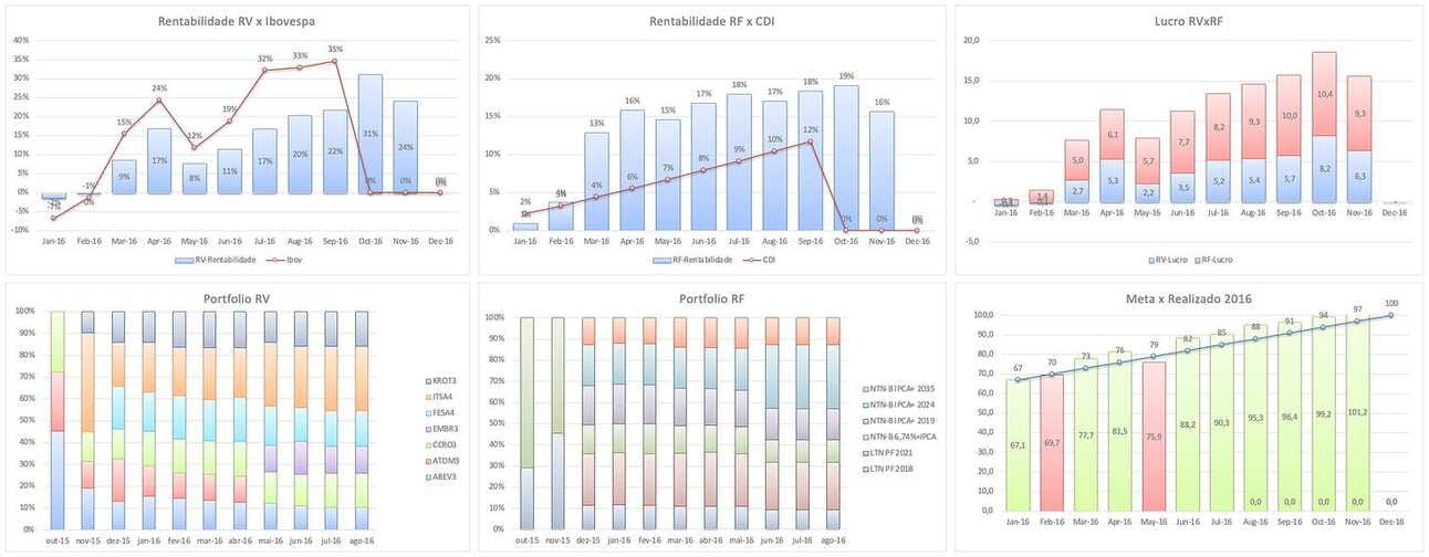 Lá fui eu criar minha própria planilha. Quem já fez isso sabe o trabalho que dá. Mas não é um trabalho em vão. O processo de criação é delicioso. Sem contar o quão gratificante é ver o seu portfolio performando