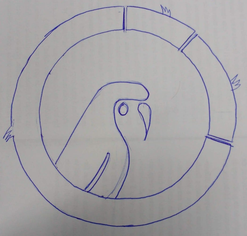 Então decidi desenhar eu mesmo. Depois de muito tempo olhando para logos e rabiscando desenhos bizarros, desenhei o que viria a ser o logo.