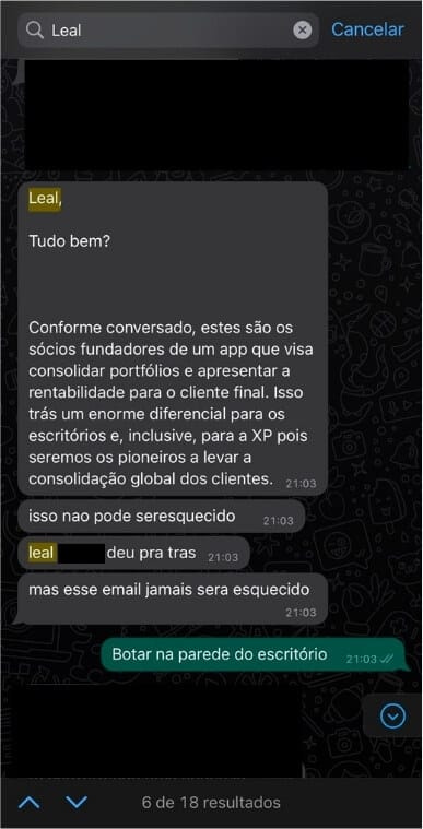 A gente ia fechar uma parceria com a XP, expandir para todos os escritórios e ajudar os caras a fazer dinheiro para caceta.