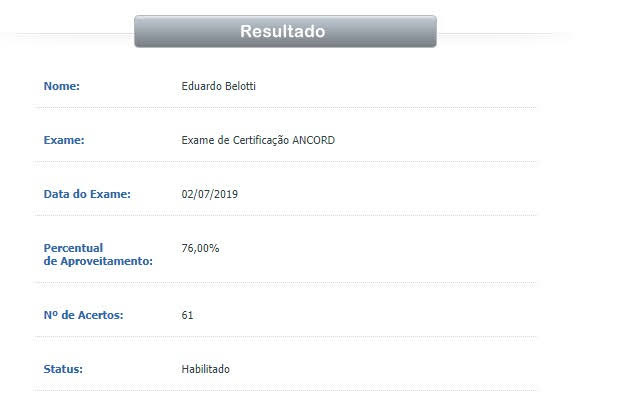 Fizemos a prova da Ancord e passamos.