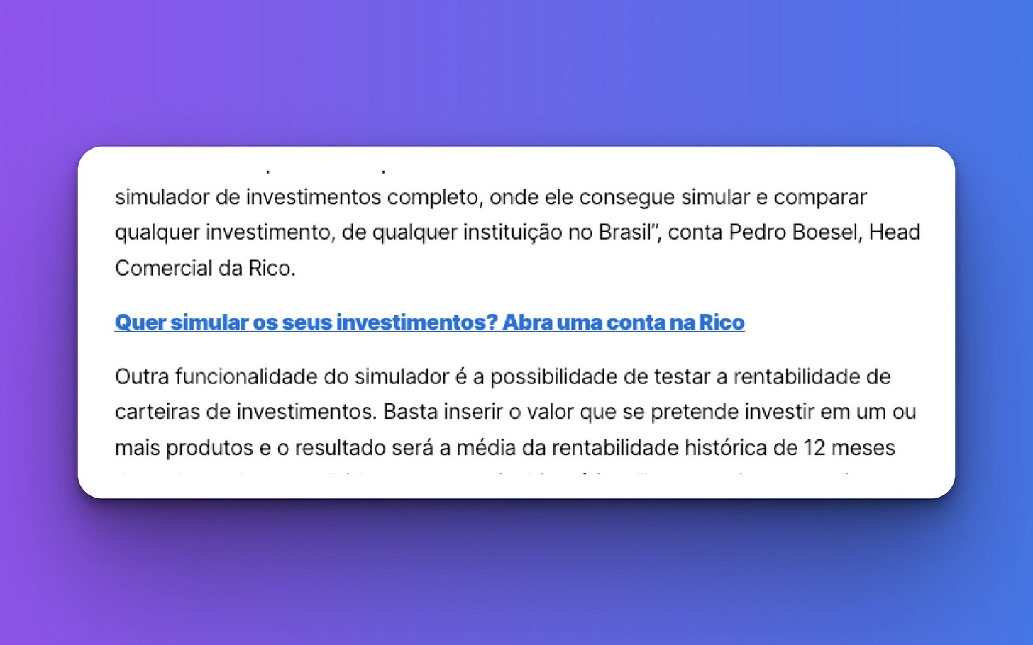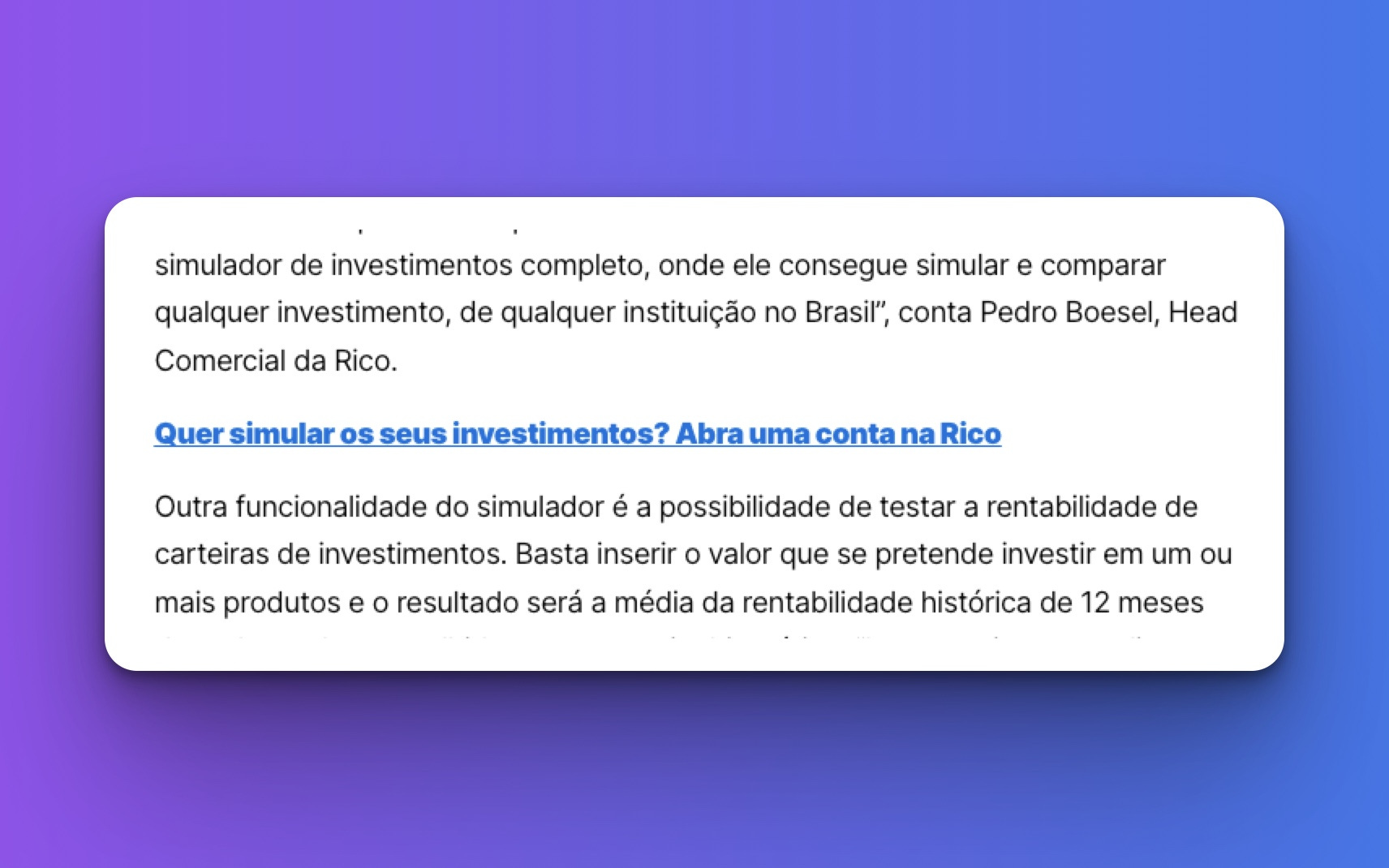 Só que em todos esses conteúdos existia algum call to action para abrir conta na XP, na Rico ou na Clear. (As 3 corretoras eram da própria XP).