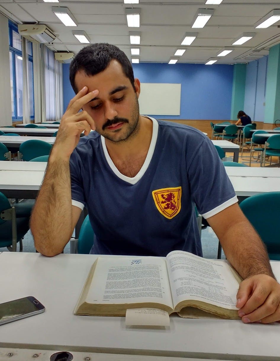 Na volta do almoço, o Gabriel sempre parava para tomar um café e a gente aproveitava para trocar ideia com alguns amigos que estavam fazendo mestrado lá. Depois era subir para a biblioteca e trabalhar até o horário de fechar.