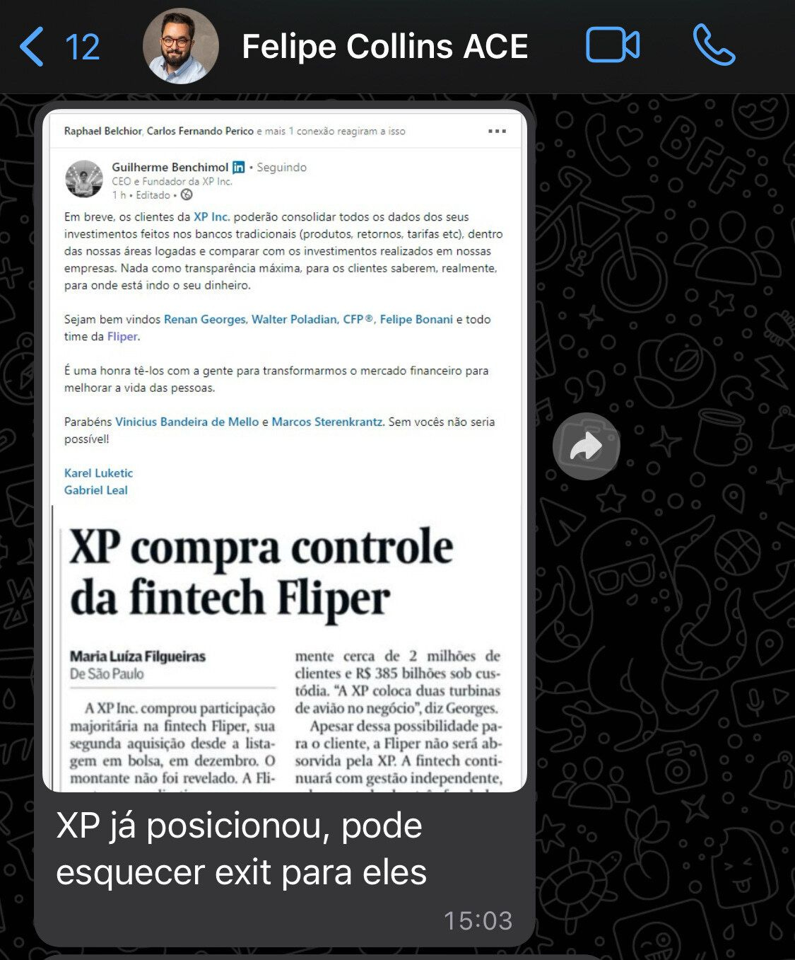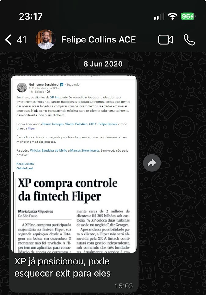A semana começou com um anúncio de que a XP tinha comprado um concorrente meu. Um outro app consolidador de investimentos chamado Fliper.