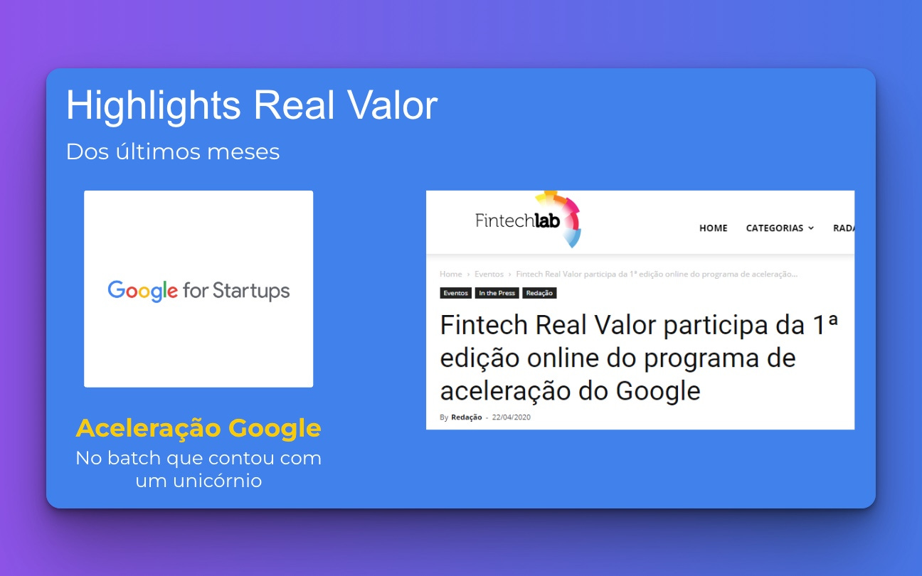 É difícil de falar o quanto o carimbo de qualidade Google ajudou, mas uma coisa é certa: a gente colocou o logo do Google for Startups em todo e qualquer material do Real Valor para dar aquele boost de autoridade. Apesar disso, as conversas com os fundos não avançavam muito.