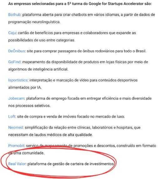 Real Valor dentre as aceleradas da quinta turma do Google for Startups