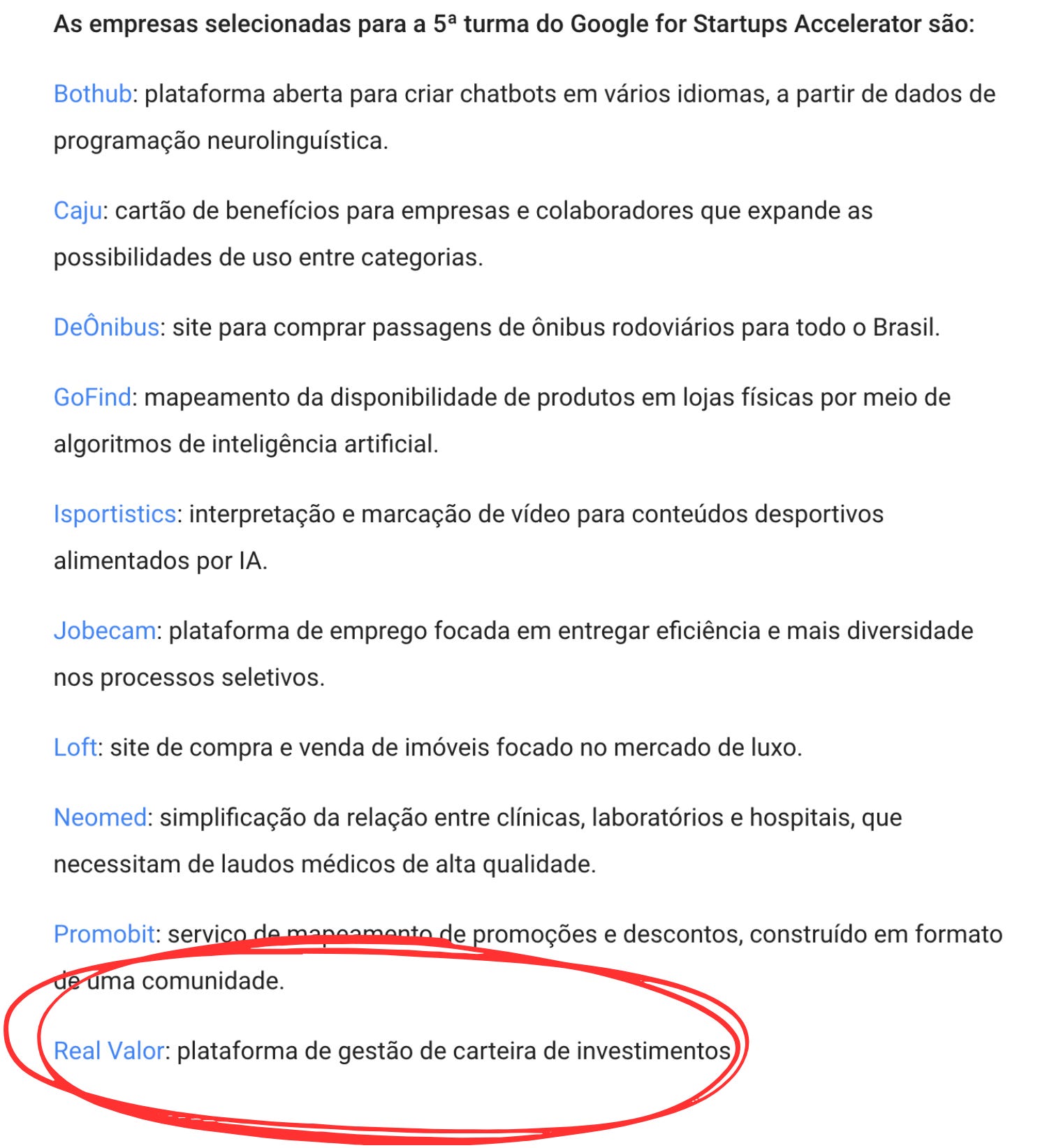 No meio desse terremoto, uma notícia boa: passamos no programa de aceleração do Google. O Google for Startups.