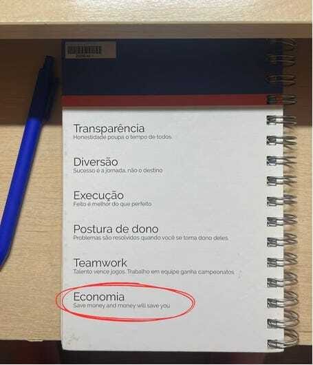 Um dos nossos valores era "Economia: Save money and money will save you"