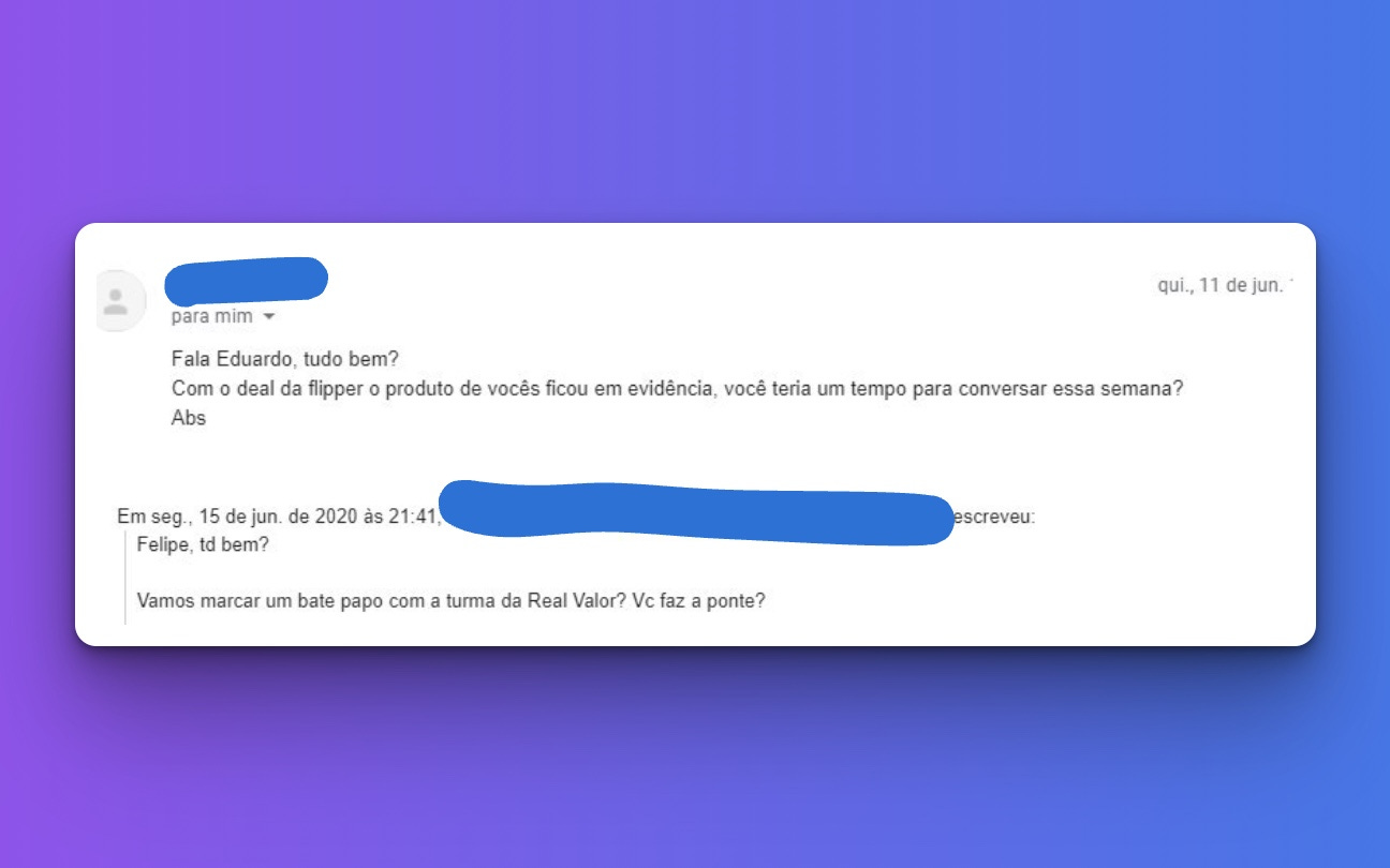 Uns meses antes da XP comprar a Fliper e agitar o mercado, eu conversei com o CEO de uma corretora. A pauta era uma parceria do Real Valor com a corretora em questão.